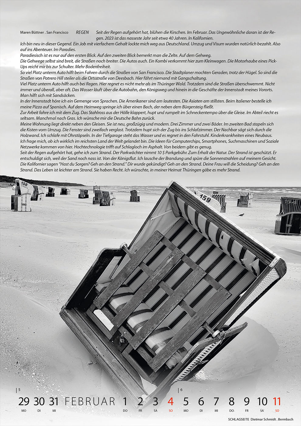 Literaturkalender Thüringer Ansichten 2024: Maren Büttner: Regen | Dietmar Schmidt: Schlagseite (Gestaltung: Designakut 2023)