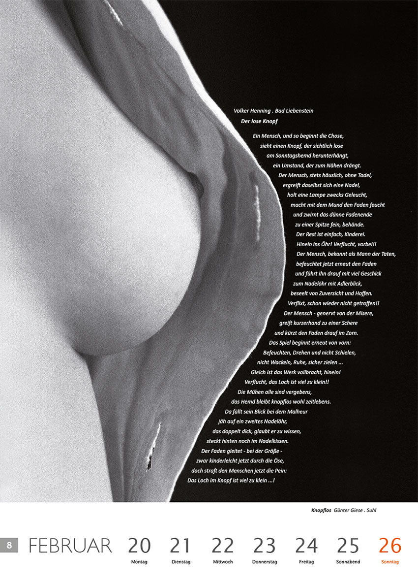 Der lose Knopf (Text: Volker Henning) | Knopflos (Foto: Günter Giese) . Literaturkalender Thüringer Ansichten 2012